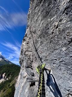 Die Klettersteige bewegen sich überwiegend im mittleren Schwierigkeitsbereich von B/C, teilweise bis D/E. Für einige Abschnitte sind eine solide Kondition, grundlegende Kletterkenntnisse und stellenweise auch etwas Armkraft erforderlich. In diesem Gebiet finden wir eine große Vielfalt an Routen – alles, was das Klettersteigherz höherschlagen lässt. Die vorgesehenen Touren setzen Erfahrung voraus und sind für Einsteigerinnen und Einsteiger nicht geeignet.
