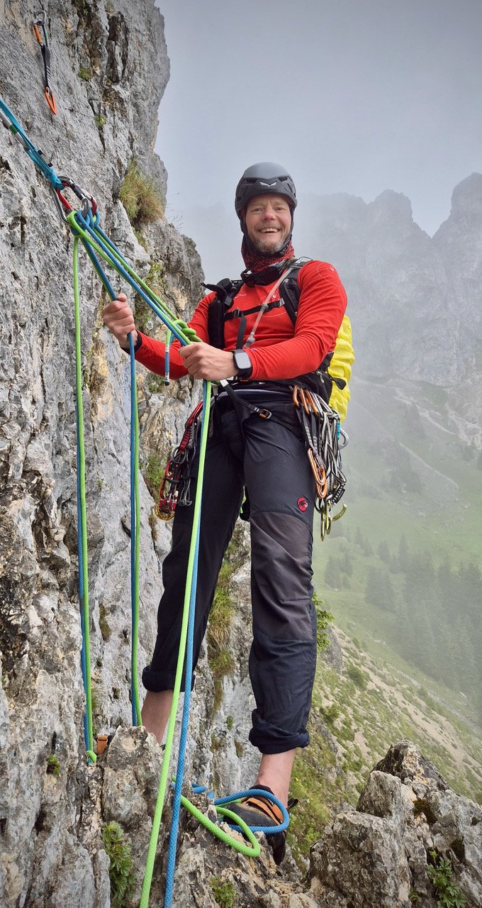 In unmittelbarer Nähe der Hütte findet sich ein Klettergarten der Extraklasse. Für Allgäuer Verhältnisse gut abgesicherte und sanierte Routen im 3. bis 9. UIAA Schwierigkeitsgrad. Der untere Schwierigkeitsgrad darf dabei als willkommene Einführung in das Klettern am teils brüchigen Dolomit angenommen werden. Steigerung ist immer möglich. An vier aktiven Klettertagen dürfen wir so manche spannende Erfahrung sammeln und unser Können unter Beweis stellen und aus der Praxis heraus verbessern. Neben den Einseillängen finden wir eine große Anzahl leichter Mehrseillängen-Touren. Ein unglaubliches Gefühl mit fast 200 m Luft unterm Hintern am Stand in der Wand zu hängen und die Aussicht zu genießen.